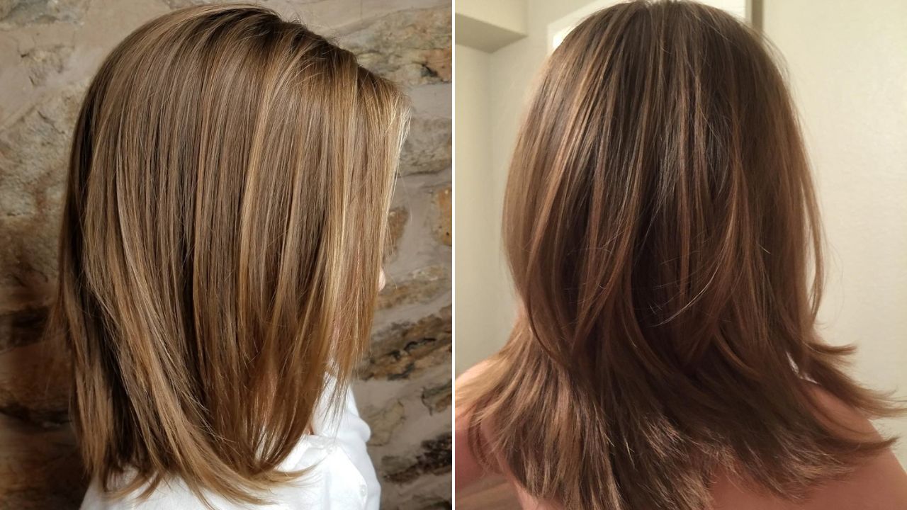 For something a little different, try a sleek inverted bob with sun-kissed highlights. The cut creates a nice rounded shape and a neat look. The style works equally great with thick and fine hair, especially when kept at chin level.