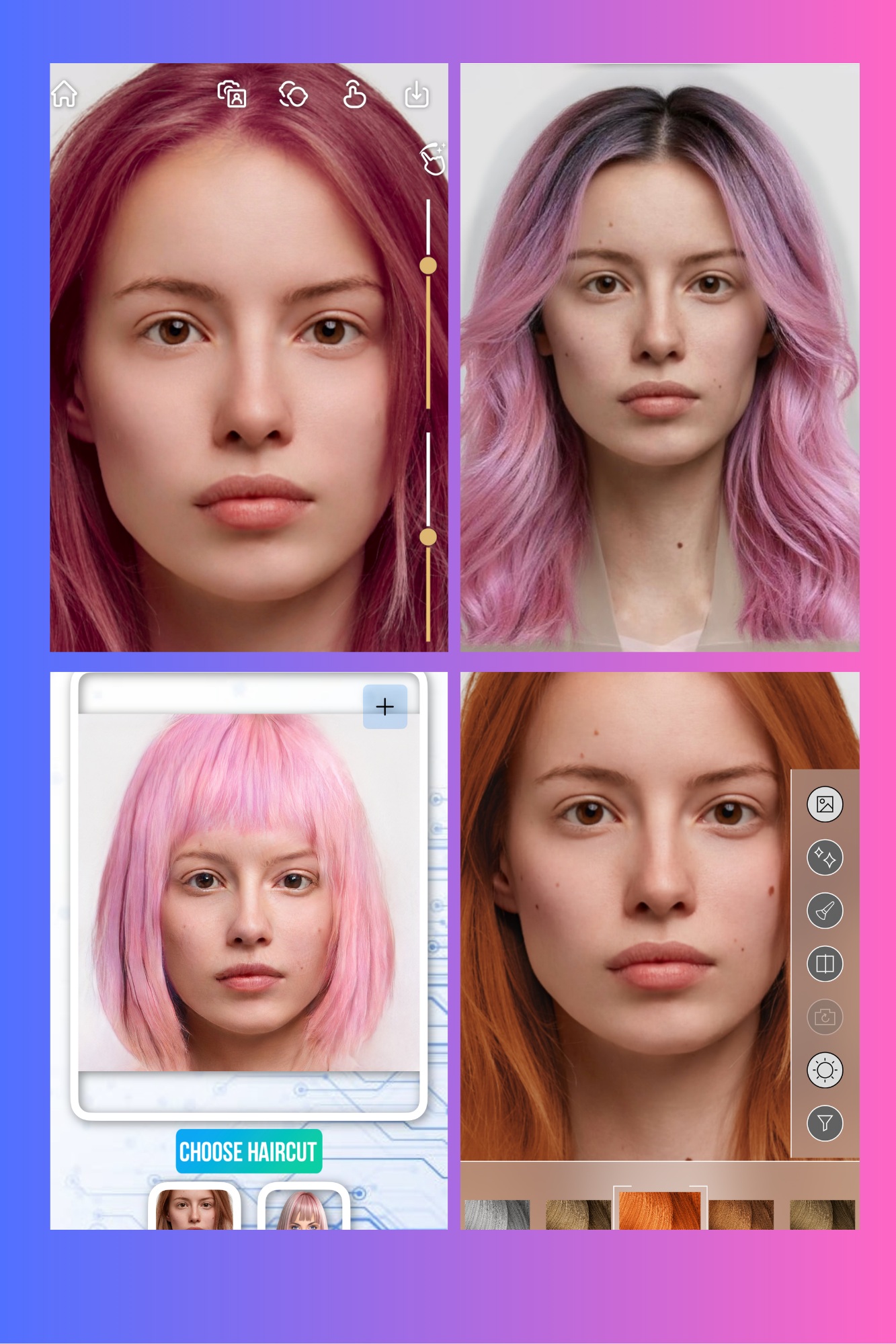 Choosing new hairstyle ideas can be overwhelming, especially with so many similar examples you have to look through online. With our hairstyle try-on tool, you can explore 100 different cuts with diverse colors and partings to find the style that flatters you most.