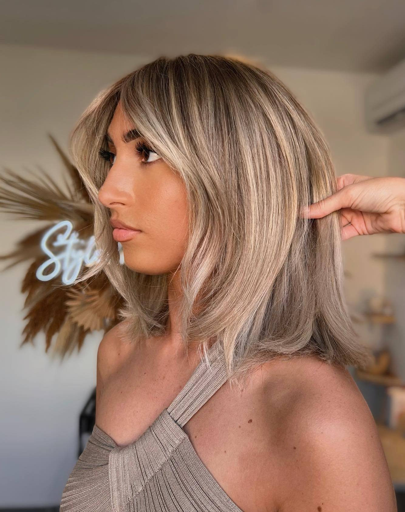 Choppy above shoulder lobs ooze sexy vibes and look effortlessly adorable, especially when styled in loose waves. A universal cut for blondes, redheads and brunettes!