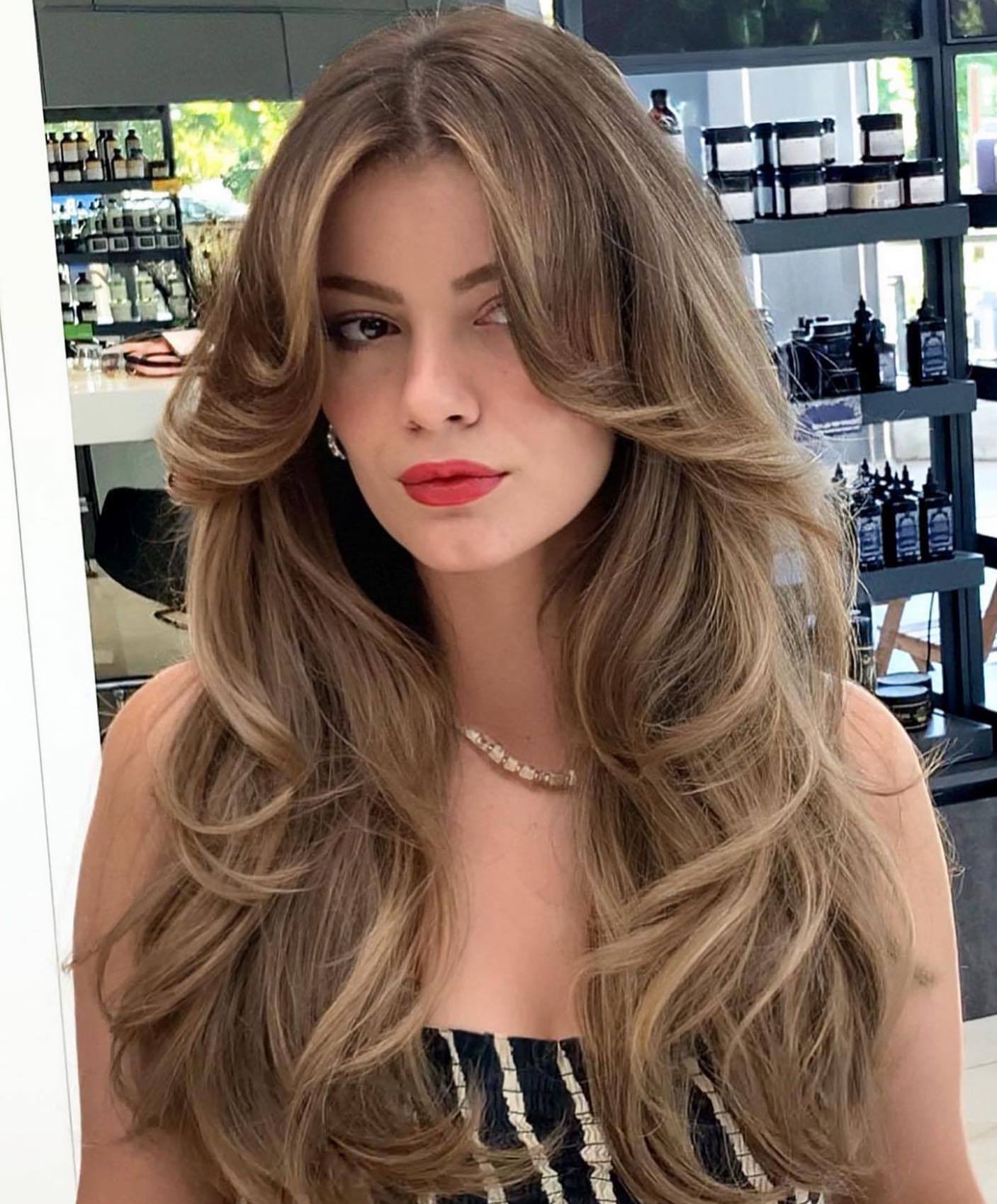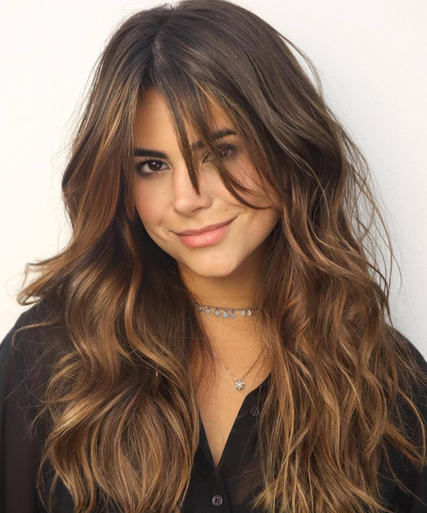 If you’re into hairstyles with face-framing, you’ve got plenty of options, and this wavy hairstyle is one of them. Get layers of different lengths and highlight them with a beautiful blonde shade to complement your brown hair and add texture to it.