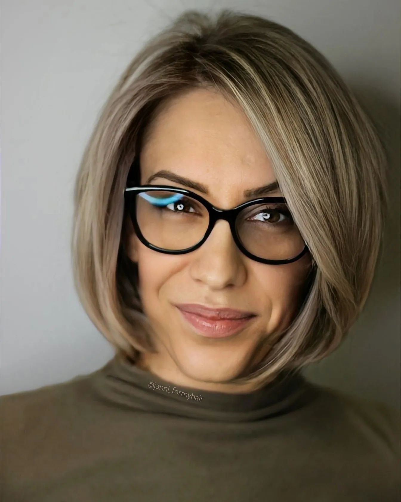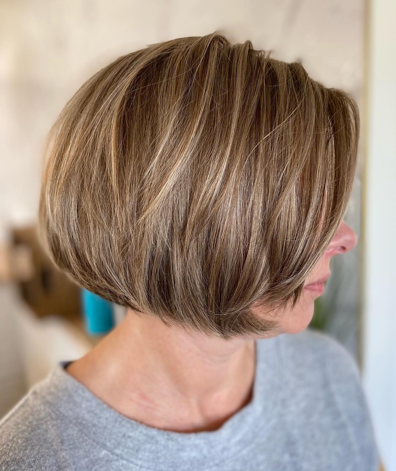 The best aspect of this sweet, layered haircut is its multi-seasonal capabilities – you can rock it year-round. Ask your stylist for a well-blended brown blonde color, and blow it out to perfection for a gorgeous rounded bob look.