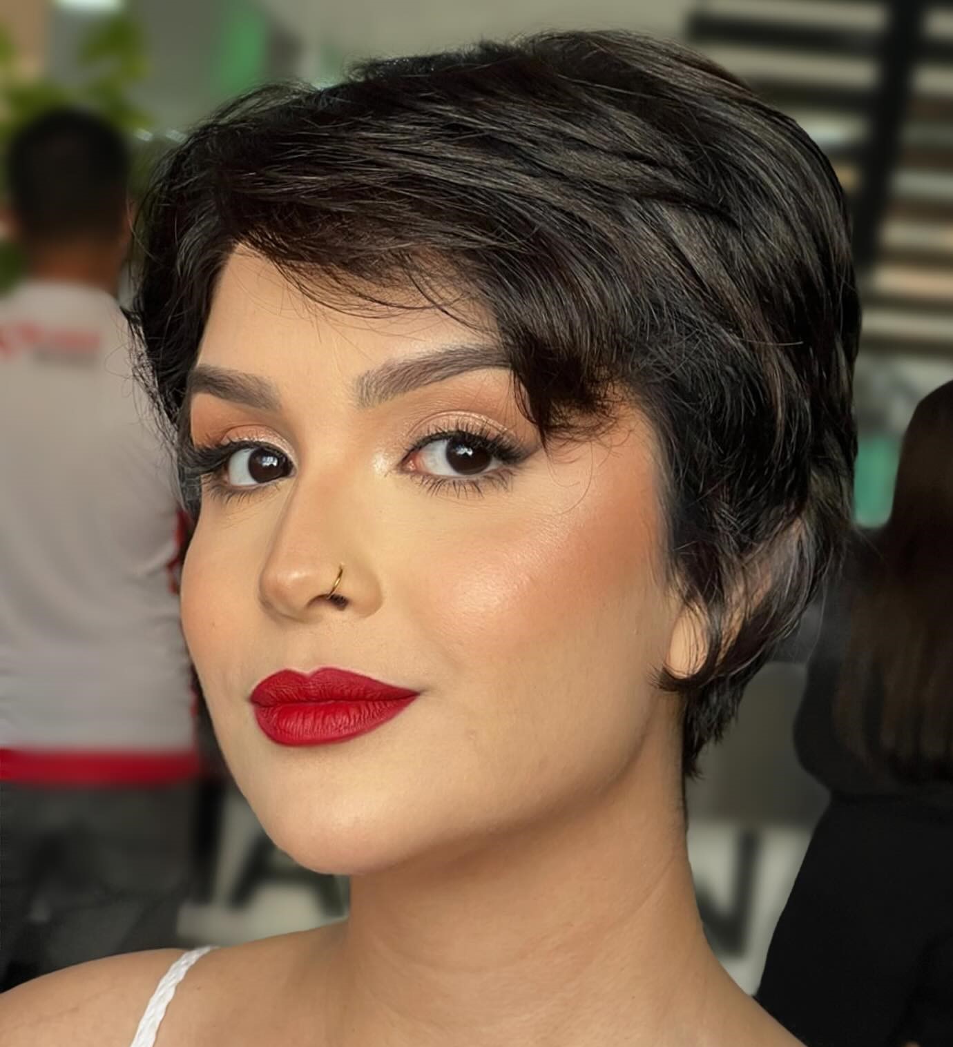 This cheekbone-grazing cut frames the face without requiring a blowout to sit right. A great pick if you’re flirting with the feathered pixie cut and want something soft and easy to wear day to day.
